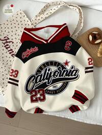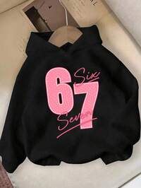 Tween Girl Contrast Color Street Style, 23 Number & Letter Graphic Print Sweatshirt, Casual Comfortable Thick Warm Soft Loose Fit Pullover Sweatshirt Suitable For Autumn/Winter Daily, Street Style, Campus, Holiday, Cozy Season, Autumn & Winter For, Easy Comfort, Autumn & Winter Layers, Stylish Girls, Casual Wear, Graphic, Fall & Winter, Chic Autumn, New Style, Homecoming, Winter Fashion