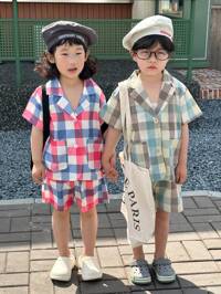 SHEIN 2pcs Young Boy Casual College-Style Plaid Short-Sleeved Shirt And Shorts Set, Suitable For School, Daily, Sports, Vacation, Outdoor, Spring And Summer Season. Perfect For Brother And Sister Matching And Parent-Child Outfits.