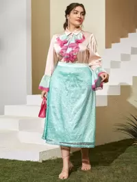 SHEIN ICON Plus Asymmetrical Neck Cut Out Waist Dress With Gloves