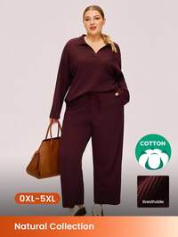 LUVLETTE Christmas & New Years Pajamas Autumn And Winter Plus Size Women Soft Red & Burgundy Cotton Waffle Basic Long-Sleeve & Long Pants Loungewear 2 Pieces Pajama Set With Pockets Lingerie Pants With Pockets Fall Pajamas Clothes