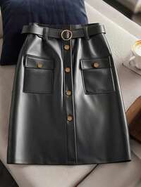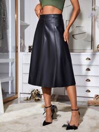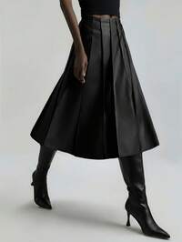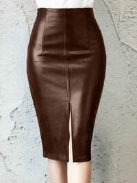 ONTREBizChic Spring & Summer Women's High Slit PU Skirt, Urban Commuter Business Casual Dress, Elegant Romantic 90s Retro Style, Suitable For Christmas, New Year, Valentine's Day, Party, Beach, Graduation, Versatile & Minimalist, Appropriate For Wedding Guest, Host, Date, Party, Concert, Brunch, Airport And Multiple Occasions #8 Bestseller