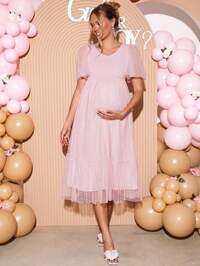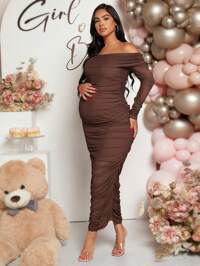 LoomabyLoomaby Pregnant Women's Elegant Tie-Dye Print Ruched Foldover Off Shoulder Dress, Suitable For Party, Banquet, And Vacation,Gender Reveal Dress,Maternity Dress, Baby Shower , Spring Outfit Women , Spring Break OutfitsDress,Pink Dress ,Pink Dresses For Women