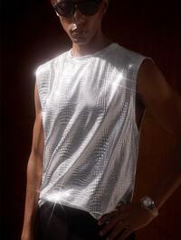 AKNOTIC Men's Festival Knit Snake Print PU Wide Strap Black Tank Top For Casual Wear And Music Festivals