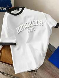 Manfinity Joysei Men's Letter Embossed Casual Short Sleeve T-Shirt