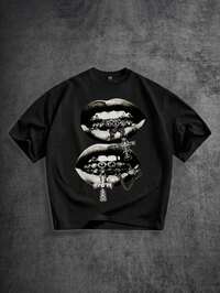 Rick and Morty X SHEIN Men's Letter & Cartoon Figure Graphic Round Neck Short Sleeve T-Shirt