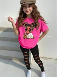 Tween Girls' Pink & Burgundy Sun, Moon, Star, Floral, Insect, Vintage English Slogan Graphic Tee Shirt, Short Sleeve, Suitable For All Seasons Summer Graphic Tees Summer T Shirt Sunshine T Shirt Pink Graphic Tee Aesthetic Tees
