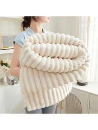 1pc Super Soft Large Striped Plush Blanket, Wide Striped Cutout Faux Fur Blanket, Pink Bedroom Decor Blanket, Milk Plush Halloween Flannel Throw Blanket, Casual Nap Blanket, Office Nap Small Throw Blanket, Suitable For Napping, Christmas, Office, Camping, Sofa - Multifunctional Polyester Bedspread, Perfect Christmas Gift1pc Solid Color, Valentine's Day Striped & Plaid Soft Warm Wool Blanket, Christmas Gift Suitable For All Seasons Room Decor, Cozy & Comfortable Ladies Gift Blanket, Machine Washable, Modern Versatile Soft Throw Blanket For Home Decor, Christmas, Bedroom, Sofa, Travel, Office This Throw Blanket Is Perfect For Use In Spring, Summer, Fall, And Winter. Lightweight But Warm, It Provides Year-Round Comfort, Making It Ideal For Any SeasonMade With High-Quality Fleece Material, This Plush Throw Is Fluffy, Soft, And Shedding-Resistant, Offering A Comfy, Cloud-Like Feel For Maximum Relaxation.