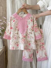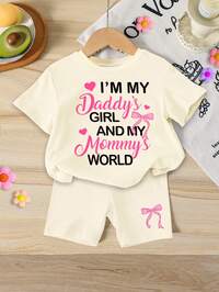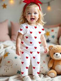 HappikinsSHEIN Baby Girl Casual Cute Heart & Polka Dot Print Snug Fit Round Neck Short Sleeve Pants Pajama Set, Suitable For Summer, New Style For Fall, Sweet Style, Kids Fall Fashion, Kids Cozy , Kids Daily Fashion, Two Pieces Set, Easy Comfort, Cozy Spring And Summer Styles, Valentine's Day