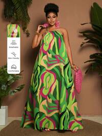 SHEIN SXY Plus Size Women's Spring/Summer Sexy Elegant Commuting Minimalist Black & White Striped Print Waist Tie Flowy A-Line Dress, Suitable For Everyday Wear, Business, Simple, Commuting, Elegant, Casual, Shopping, Streetwear, Going Out, Easy To Match & Looks Slim, Accent Your Body, Flatter The Figure