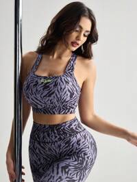 Menodora SHEIN Sport Women Full-Print Round Neck Sports Bra For Pole Dance & Daily Fitness