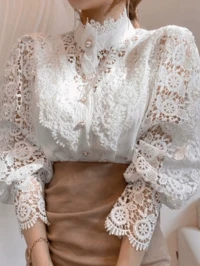 SHEIN MOD Women's Fashionable Elegant Lace Trim Lantern Sleeve White Peplum Blouse, Spring/Summer Outfit, Elegant, Chic, Vintage, French Romantic Style, Valentine For Women, Blouses For Women Party, Casual Blouses For Women, White Blouse, Women's Carnival Costume, Holiday Outfits, Perfect For Vacation, Date, Picnic, Party, Prom, Festival, And Birthday, Romantic, Tea Party