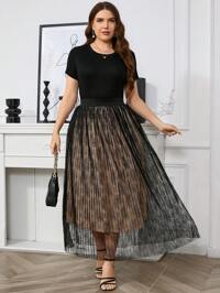 SHEIN Clasi Plus Size Summer Elegant Lace Patchwork Slim-Fit High Waist Commuting & Holiday Party Women's Dress