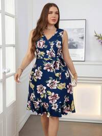 SHEIN Clasi Plus Size Summer Elegant Floral Allover Print Sleeveless Dress