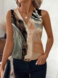 SHEIN Clasi Plus Size Sleeveless V-Neck Printed Blouse, For Summer