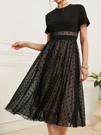 SHEIN Clasi Plus Size Polka Dot Printed Casual Short Sleeve Dress With Round Neck