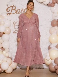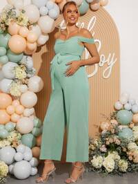 LoomabyLoomaby Elegant Maternity Party Jumpsuit, V-Neck, Slit Sleeves, Waist Cinched, Cropped Leg,Gender Reveal Dress,Maternity Dress, Baby Shower Dress,Wedding Guest Dress For Women,, Wedding Party Dress
