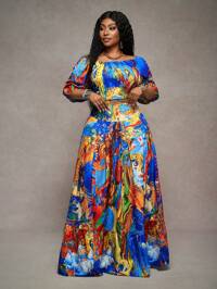 Slaydiva CURVESlaydiva Women Plus Size Loose Printed Wide Leg Pants, Suitable For Music Festival, Easter, Western, Boho, Nashville, Birthday Party, Graduation, Student, Daily Casual, Leisure, Vacation, Cruise, Beach, Sunbathing, Relaxing Holiday,Summer Pants