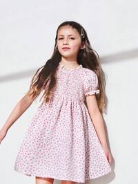 SHEIN Young Girls' Ditsy Floral Cap Sleeve A-Line Loose Dresses, Spring Mori Style