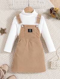 SHEIN Genkimix Kids Young Girl Mock Neck Tee & Letter Patched Overall Dress