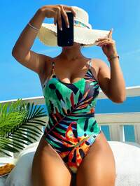 Swim Vcay Tropical Print One Piece Swimsuit