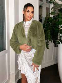 in Wrist-Length Sleeve Women Faux Fur Coats