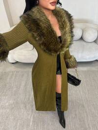 SHEIN SXY Women's Black Faux Fur Coat, Long Middle-Length, Vintage Lapel PU Winter Outerwear, Luxury Design; Faux Fur Trimmed Coat; Long Winter Coat; Black Coat With Fur; Women Jacket,Business, Retro, Outing, Old Money,Siren Coquettish, Cruise Attire, Commuting, Richly Layered, Date Night, Gathering, Minimalism, Birthday, Formal Event, Break, Modest, Chic, Casual, Shopping, Street Wear, Going Out,Fall,Faux Fur,ملابس شتوية للنساء #8 Bestseller